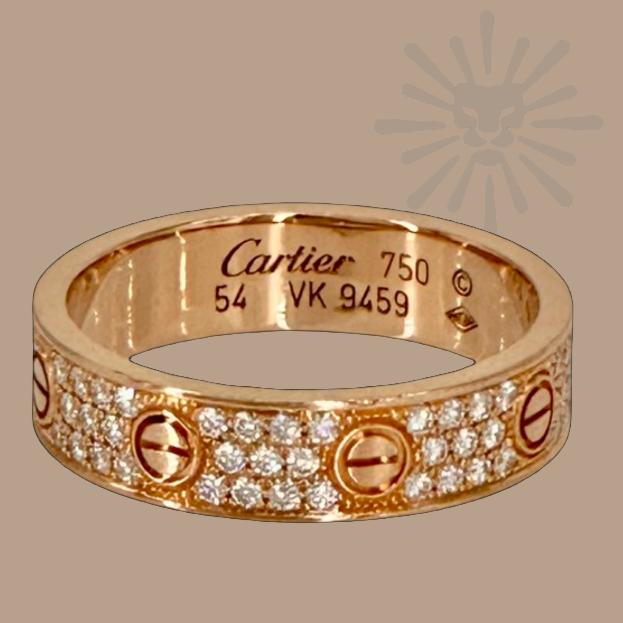 Cartier Pavé Diamond Love Ring – 18K Rose Gold, Size 6.75, Cartier 54