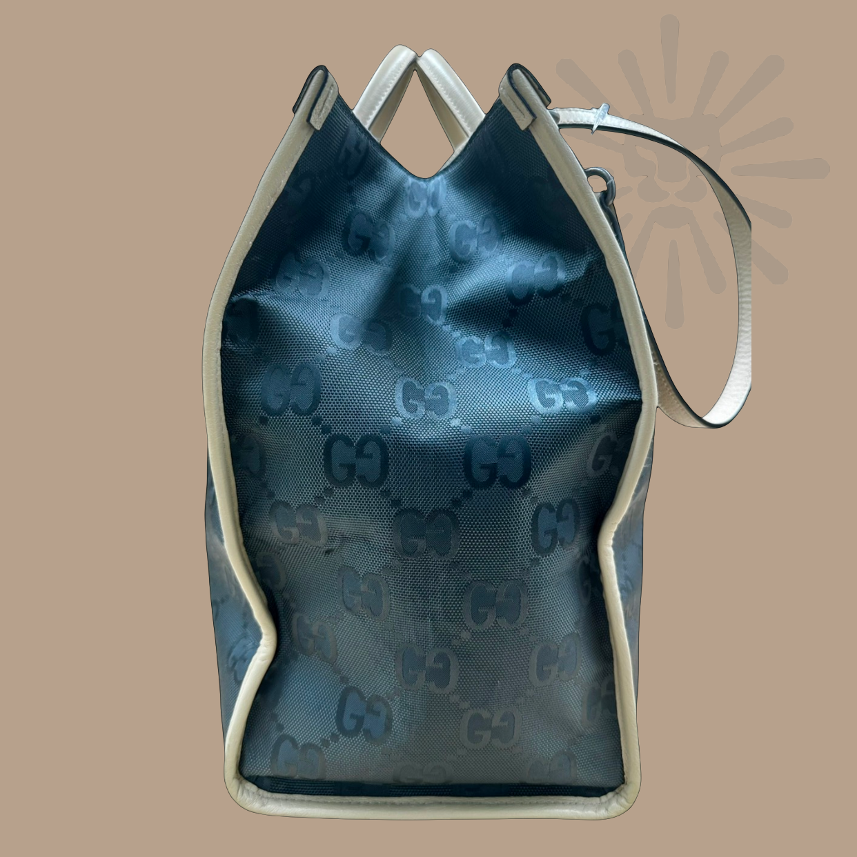 Crafted from Gucci’s sustainable GG Econyl nylon, this tote transcends fashion by design. Structured yet understated, with rolled leather top handles and an optional adjustable strap, it is both travel-ready and city-ready. Inside, dual zip compartments ensure your essentials remain orderly.